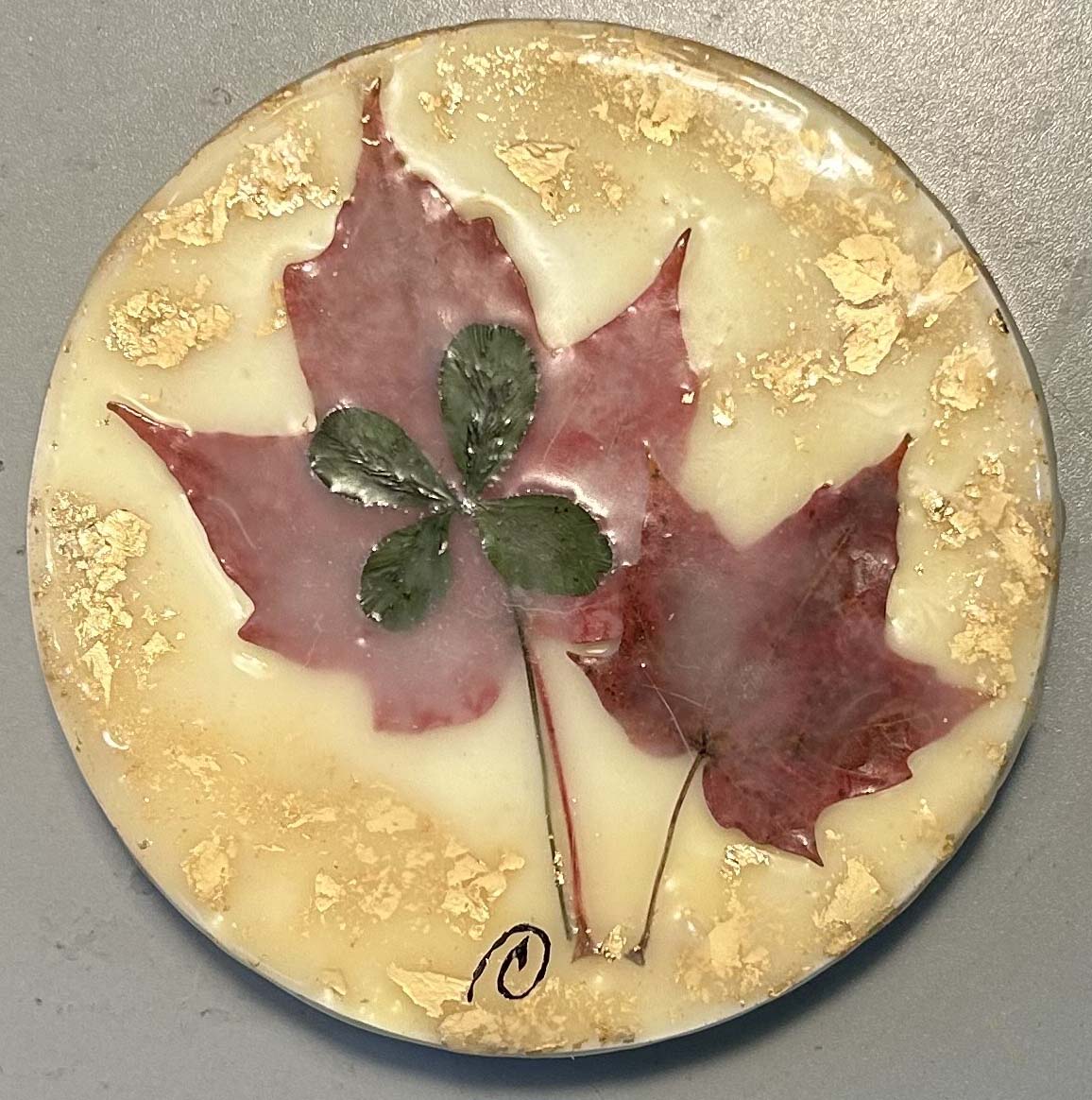Encaustic is an ancient technique of painting with heated beeswax, pigment, and damar resin. After applying the heated paint, I fuse the painting by heating again with a heat gun, iron, or blowtorch. Some of these pieces include mixed media, including natural materials, and the encaustic technique provides a protective, preservative layer.